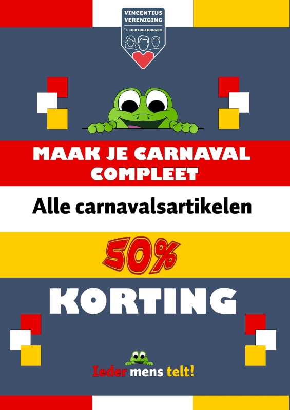 Kringloopwinkel 50% korting op alle carnavalsartikelen